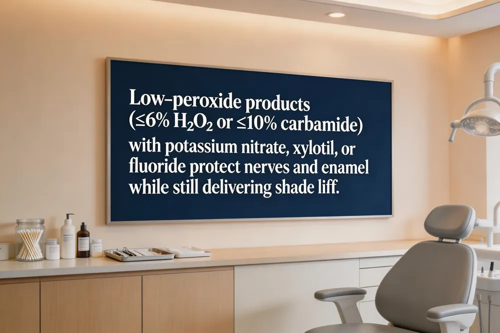When you have tooth sensitivity, opt for low‑peroxide whitening products (≤6% hydrogen peroxide or ≤10% carbamide peroxide) that lighten enamel gently while reducing the risk of discomfort. Desensitizing agents such as potassium nitrate, xylitol, and fluoride are often added to gels or trays to calm nerve response and protect against decay. Brands that cater to sensitive users include Crest 3D Whitestrips Sensitive (5.25% hydrogen peroxide with a desensitizing formula), Opalescence Go (pre‑filled trays with 10% hydrogen peroxide plus xylitol and potassium nitrate), and Lumineux Bright² (peroxide‑free strips with coconut and lemon peel oil).