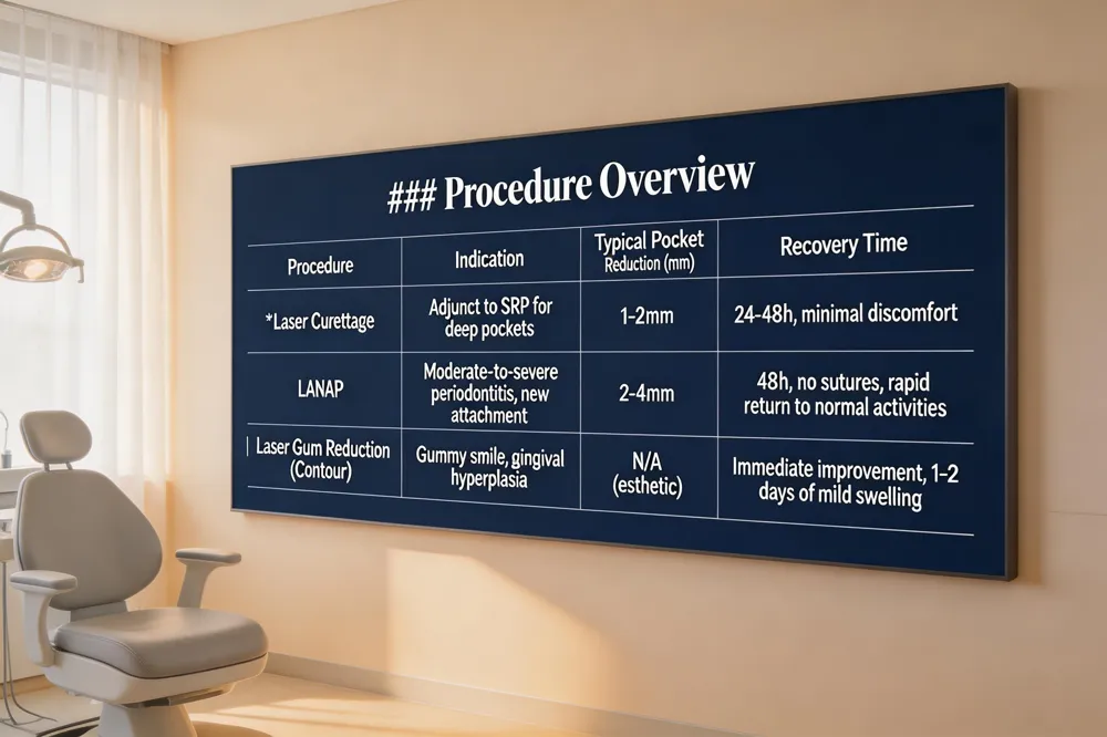 Key Laser Procedures: Curettage, LANAP, and Gum Reduction