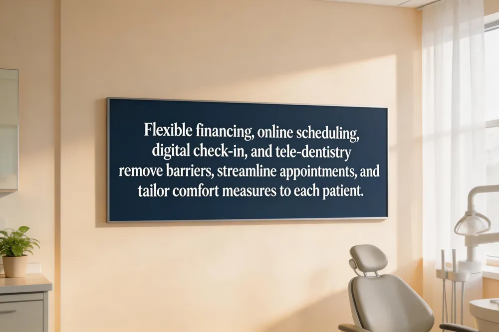 Modern dental offices are designed to remove barriers that keep patients from receiving timely care. Flexible financing options such as CareCredit let families spread the cost of advanced treatments, from same‑day crowns to laser gum therapy, so financial stress does not delay needed care. Online appointment scheduling and digital check‑in further streamline the visit: patients can select convenient time slots, complete health questionnaires, and upload insurance information before stepping foot in the office, reducing wait times and paperwork. Tele‑dentistry pre‑consultations add another layer of convenience, allowing patients to discuss concerns, review intra‑oral images, and receive a preliminary treatment plan from the comfort of home. A brief pre‑appointment anxiety questionnaire helps the dental team tailor comfort measures—whether it’s a warm blanket, noise‑cancelling headphones, or a preferred sedation option—ensuring each visit feels personalized and calm.