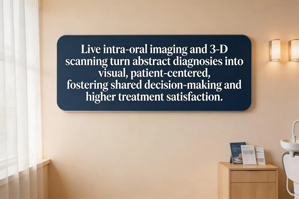Modern dental practices use intra‑oral cameras and 3‑D digital scanning to show patients live images and precise models of their mouths. This visual transparency turns abstract diagnoses into concrete pictures, reducing uncertainty and anxiety. When dentists pair these tools with clear, patient‑centred communication—plain language, eye contact, and empathy—patients feel heard and in control. Strategies for effective dentist‑patient communication, as highlighted in the literature, include using visual aids (photos, digital models, treatment‑plan renderings), employing the teach‑back technique to confirm understanding, and inviting questions throughout the visit. Southern Boulevard Dental exemplifies this approach: staff actively listen, explain procedures step‑by‑step, and provide written summaries and secure‑messaging follow‑ups. By integrating intra‑oral cameras, digital imaging, and a compassionate dialogue, the practice creates a trustworthy, calming environment that empowers patients to participate in shared decision‑making and improves overall treatment satisfaction.