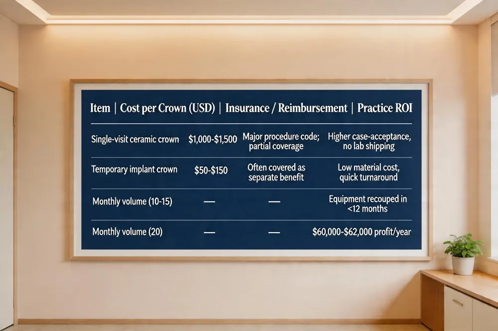 | Item | Cost per Crown (USD) | Insurance / Reimbursement | Practice ROI |