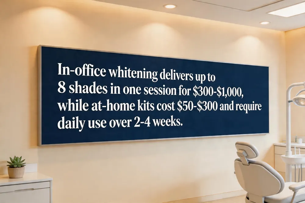 Cost and convenience: In‑office whitening costs $300‑$1,000 for a single session and delivers up to 8‑shade improvement in one visit while at‑home kits range $50‑$300 and require daily 20‑30‑minute applications for 2‑4 weeks. Custom‑fit trays vs. generic kits: Dentists fabricate trays from an impression, ensuring even gel contact and protecting gums whereas over‑the‑counter strips or boil‑and‑bite trays may miss curved teeth and cause irritation. Reddit community insights: Users report professional treatments give faster, brighter results with less sensitivity while DIY kits are praised for low cost and flexibility but need patience and strict adherence to instructions. Local availability in Rio Rancho: Southern Boulevard Dental offers both laser‑activated in‑office whitening (up to eight shades in one hour) and personalized take‑home tray kits. Call (505) 555‑1234 to schedule a consultation and achieve a safe, lasting smile.