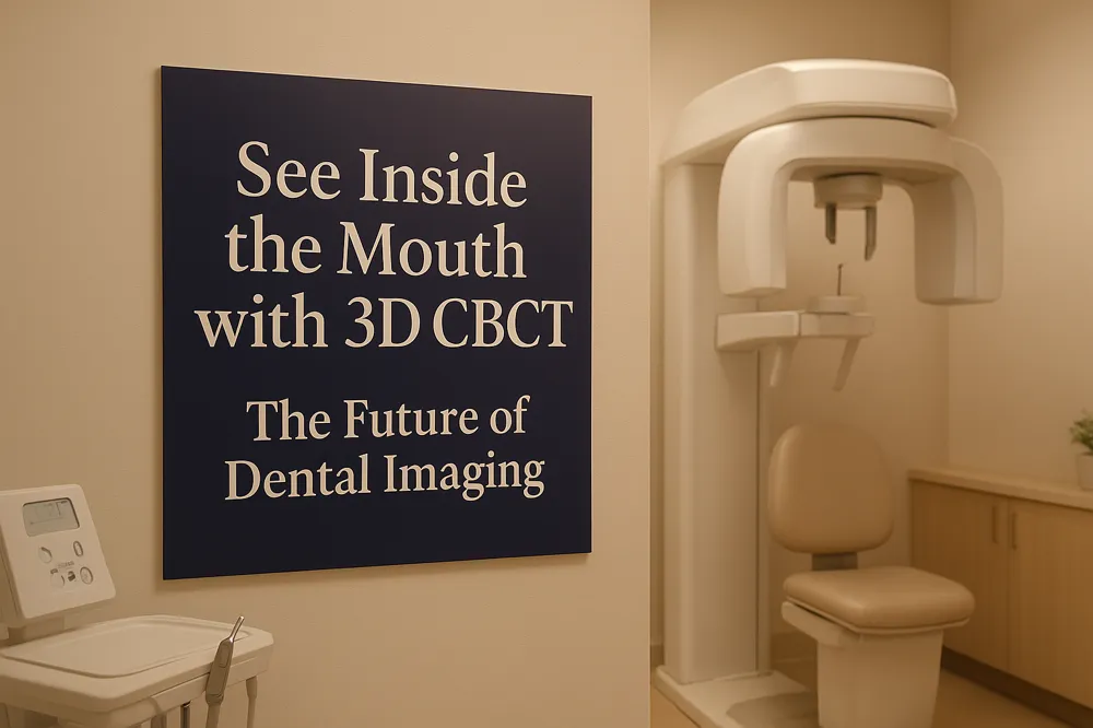 A CBCT scan, or cone-beam computed tomography, is an advanced imaging technology that produces detailed three-dimensional images of the teeth, soft tissues, nerve pathways, and bones. Unlike traditional dental X-rays, CBCT offers a comprehensive 3D model that provides clarity in complex cases. It is commonly used for planning dental implants, orthodontic treatments, assessing impacted teeth, diagnosing TMJ disorders, and detecting jaw tumors. The scan allows dentists and specialists to see inside the mouth and jaw with exceptional precision, supporting better treatment decisions.