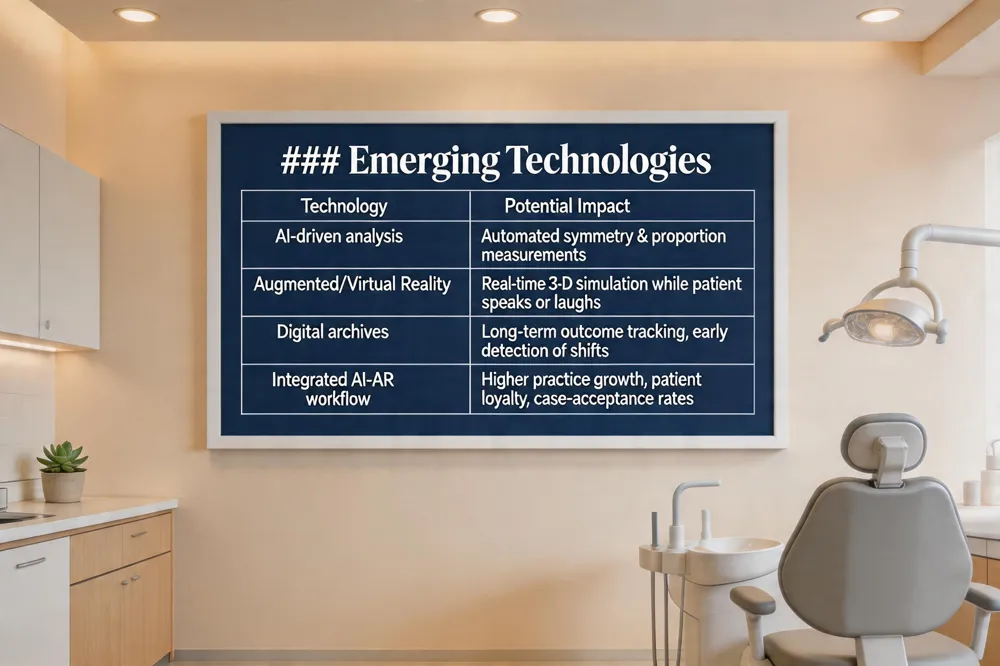 Integrating AI, AR and digital archives is expected to boost practice growth and patient loyalty. These tools differentiate a practice, attract tech‑savvy patients and raise case‑acceptance rates, encouraging visits.