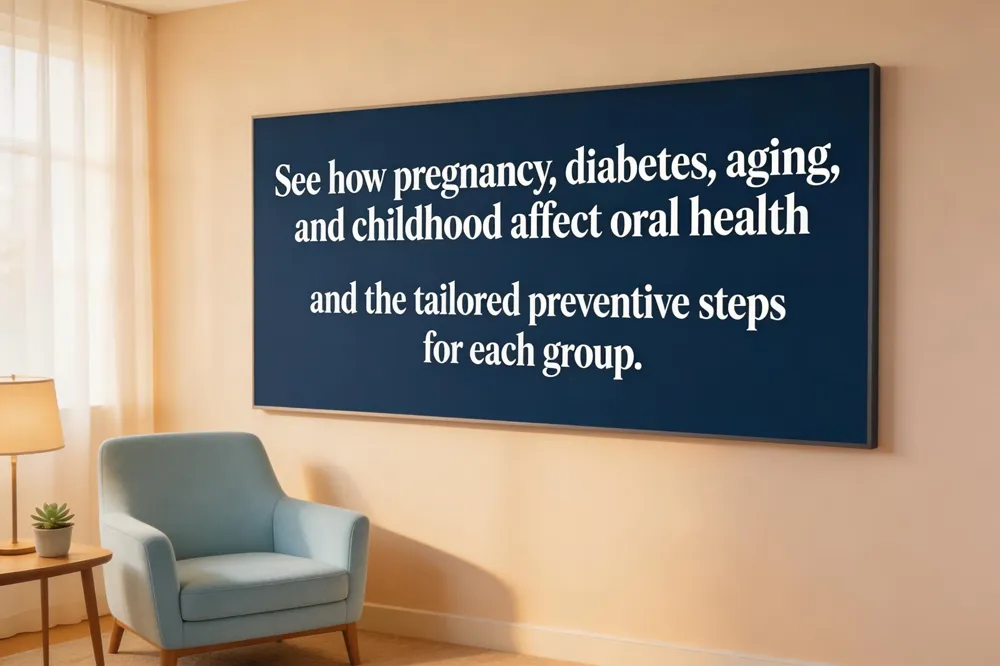 Pregnancy and oral health: Hormonal changes increase gum inflammation and cavity risk; brush twice daily with fluoride toothpaste, floss daily, and schedule a check‑up before delivery.