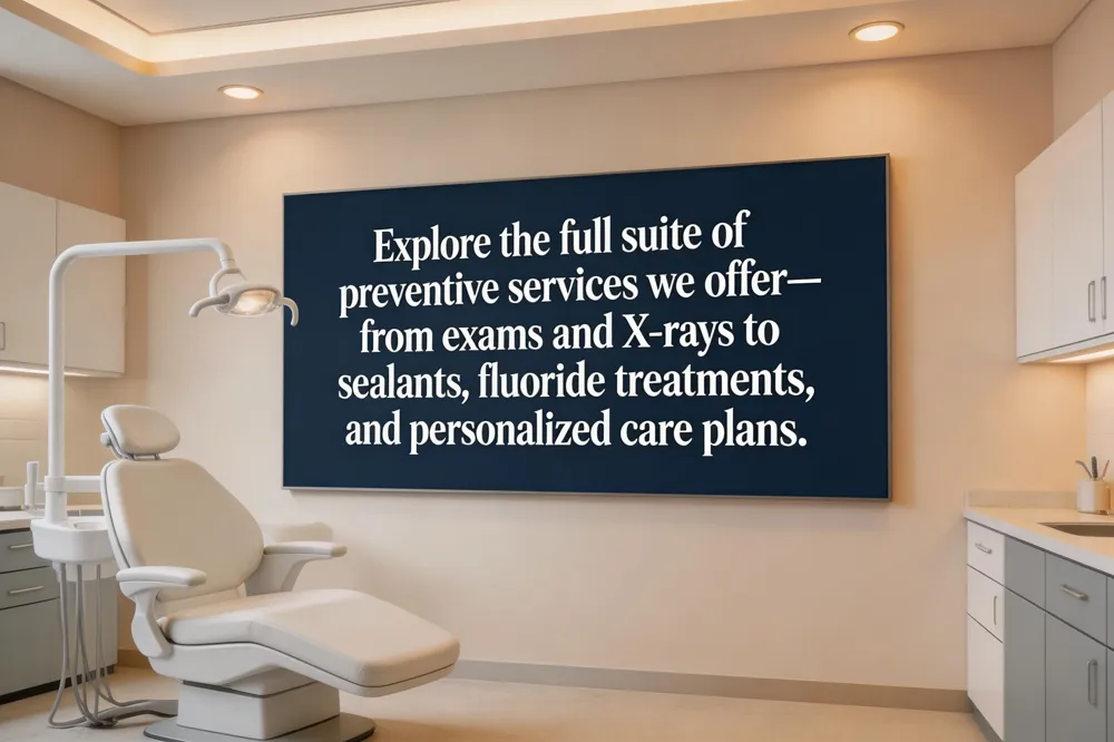 List of preventive dental services – Our preventive suite features thorough oral examinations with oral‑cancer screening, professional cleanings, digital X‑rays, sealants on molars, and fluoride varnish or gel treatments. We also provide personalized oral‑hygiene instruction, custom mouthguards for sports or bruxism, and risk‑based maintenance schedules.