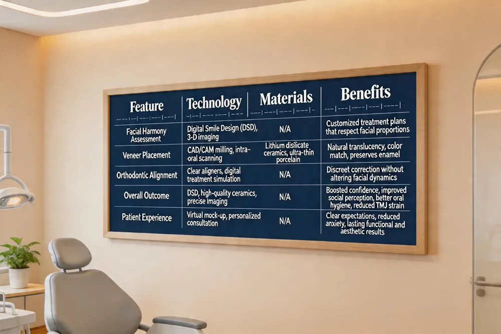 | Facial Harmony Assessment | Digital Smile Design (DSD), 3‑D imaging | N/A | Customized treatment plans that respect facial proportions |