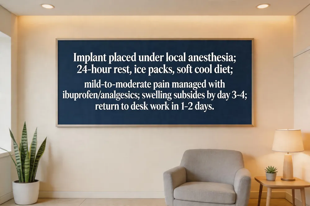 - Normal eating timeline? Soft foods 1‑2 weeks, regular diet by 2‑4 weeks, final crown after 3‑6 months.