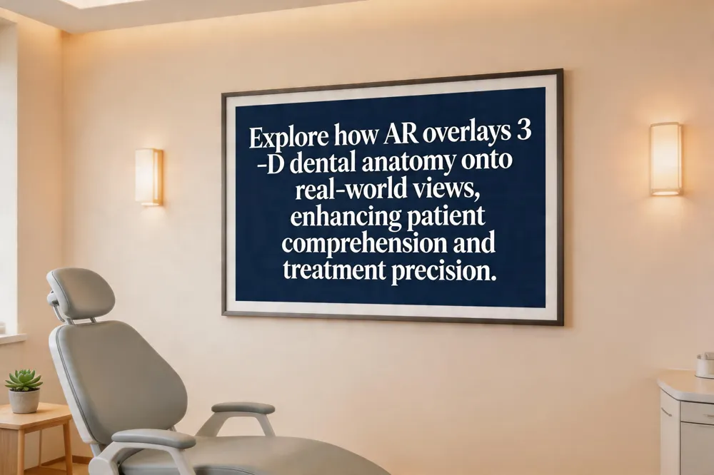 Clinically, AR improves patient understanding by up to 30 % compared with traditional 2‑D explanations, reduces anxiety, and raises treatment‑acceptance rates by 12‑15 %. Real‑time overlays guide implant placement, crown preparation, and orthodontic simulations, enhancing precision and shortening chair time. For education, AR transforms abstract concepts into interactive visualizations, boosting health literacy and post‑procedure compliance.