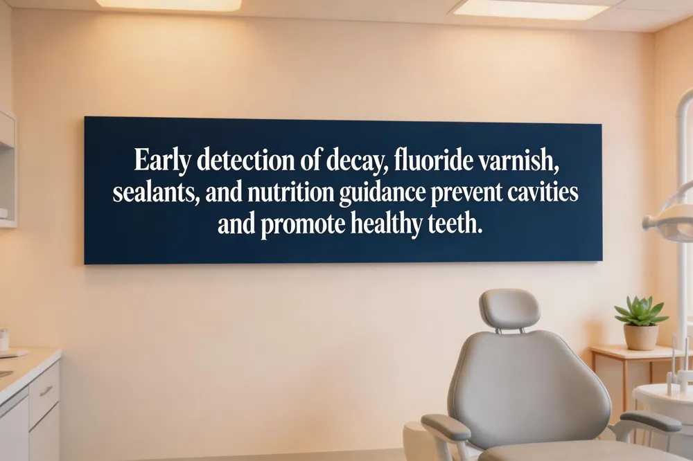 Early signs of decay in children often appear as white spots on the enamel, brown or black cavities, swollen gums, or pain while chewing. These symptoms usually result from irregular dental visits, inadequate brushing, thumb‑sucking, or a diet high in sugary and acidic foods. Preventive interventions—such as fluoride varnish and dental sealants—are proven to halt decay. Fluoride strengthens enamel and can reduce cavities by up to 30 %, while sealants protect the chewing surfaces of molars from plaque and acids. Rio Rancho family practices, including Southern Boulevard Dental and Rio Rancho Family Dental Care, apply these treatments during routine cleanings and educate parents on proper at‑hygiene techniques.