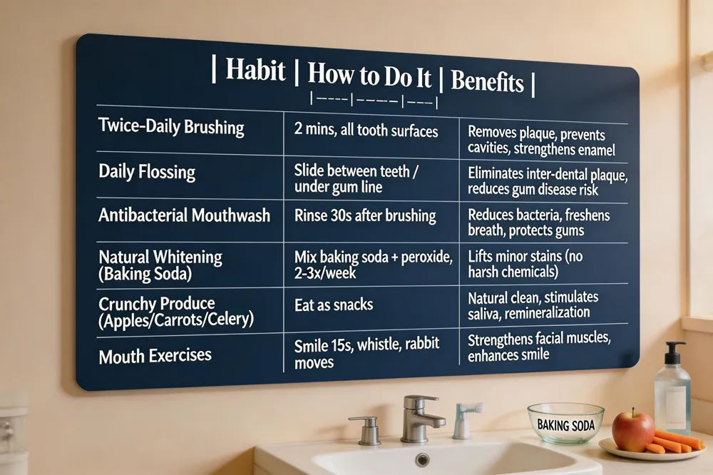 Combine these habits with routine professional cleanings for lasting, natural results.