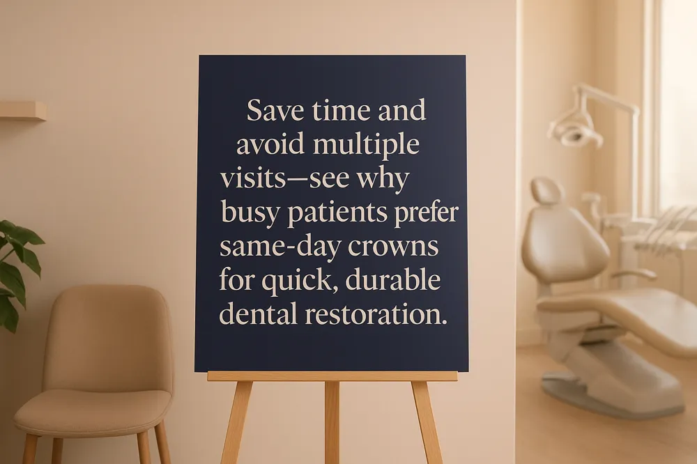 - One-visit convenience reduces disruption to daily life (Same-day crowns convenience).